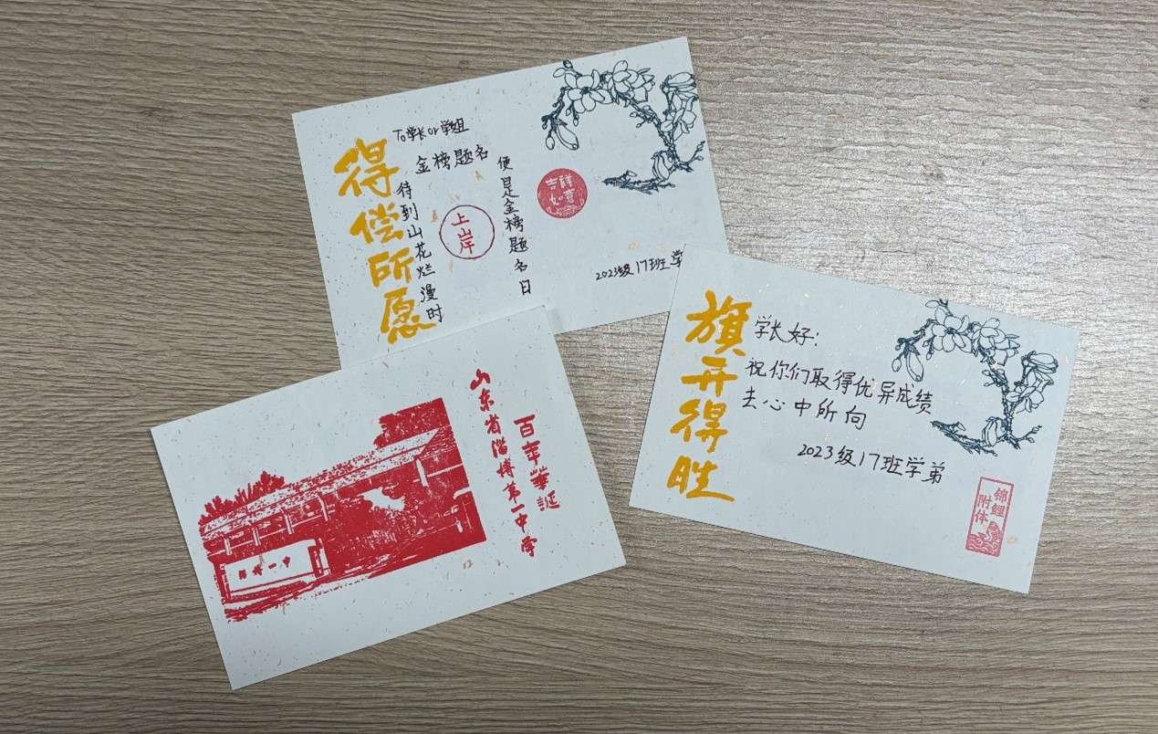 艺术中心和高二、高一年级共同策划此次活动。在艺术中心的指导下,学弟学妹们利用艺术课,以一中百年校史为经纬,设计出吉祥寓意的图案,将美育课堂成果转化为深情祝福。老师们表示,方寸贺卡承载的不仅是祝福,更是美育课堂的延伸。同学们在艺术实践中感悟匠心、传承文化,正是美育润心的鲜活见证。