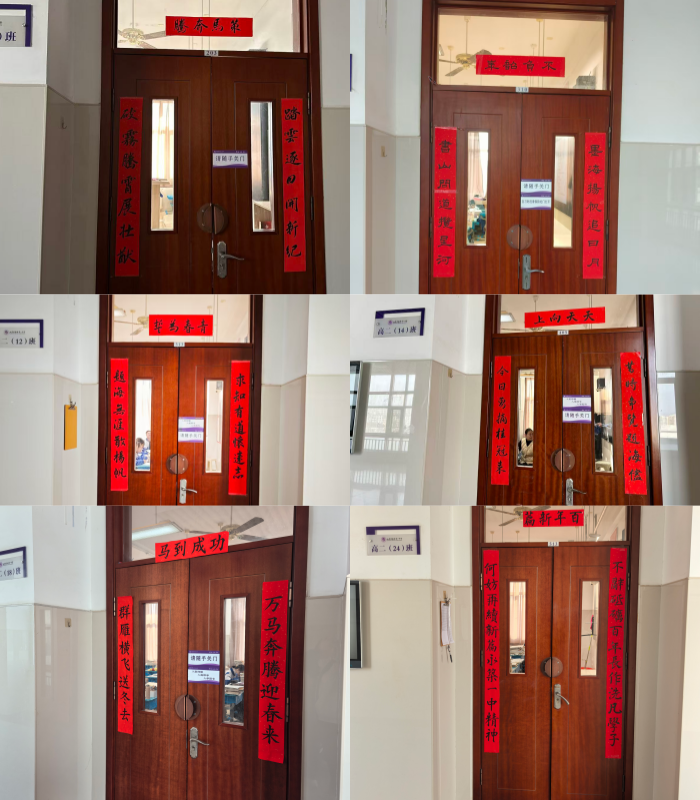 大赛历经命题、创作、评选、征集、书写与展示等环节,最终一批充满青春力量、寄托新年祝福的原创对联脱颖而出。“求知有道怀远志,题海无涯敢扬帆”“一中学子志存高远誓遂凌云之志,同学少年大展宏图共赴锦绣前程”等优秀对联展现了同学们的才华与创意。一幅幅作品,被张贴于高一、高二各班级门口,为校园增添了浓厚的节日气息。